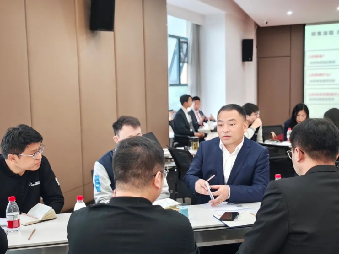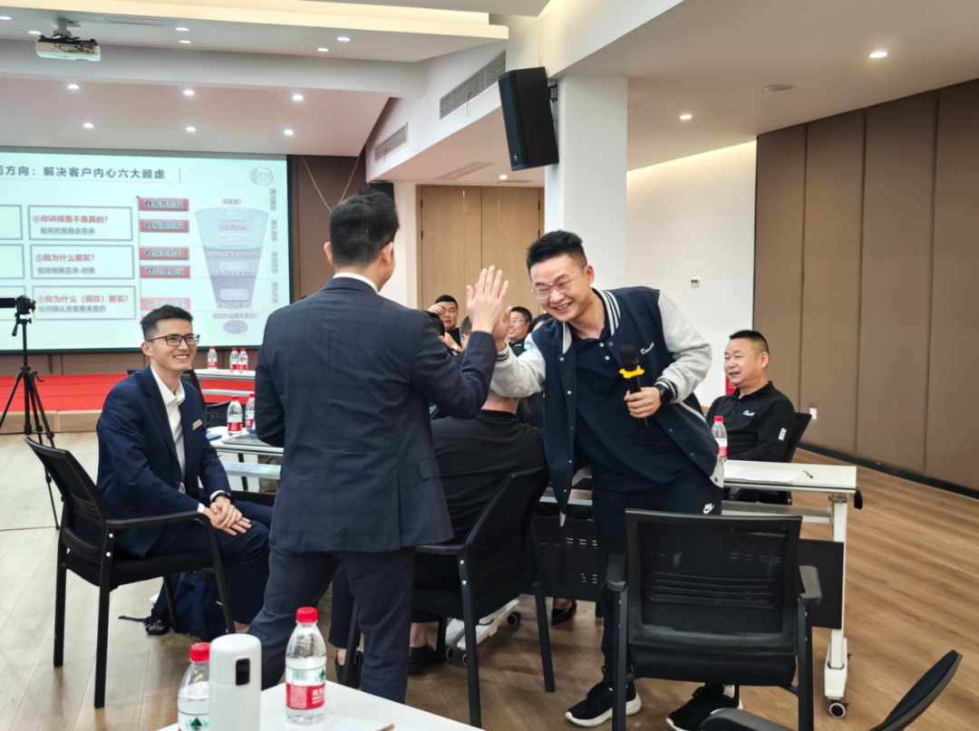 培训老师风趣幽默的讲了金牌销售的成长体系,现场气氛活跃,小伙伴们热情高涨,纷纷认真记录拍照,根据培训内容,进行平时销售流程中实际问题的讨论。