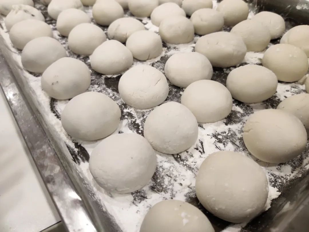 加水,和面、揉面、包馅,揉成型,一个个白白胖胖的元宵就出现在全体员工眼前。胖乎乎的大汤圆,吃了就元气满满;小巧玲珑的小汤圆,胜在可爱又喜庆。