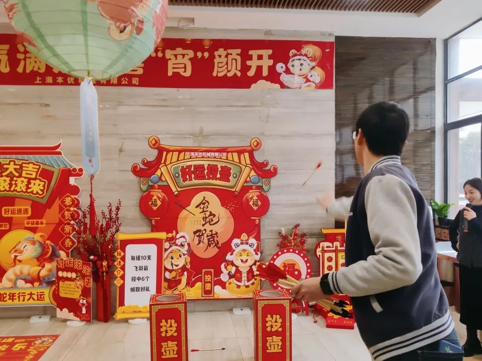 除了赏灯猜灯谜外,现场还安排了投壶纳福活动,吸引了不少员工一展身手,既能体验分寸之上博弈的刺激,也能为来年增添满满吉兆。